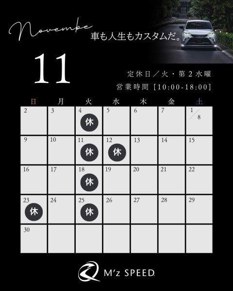 11月の営業カレンダーをご案内いたします!