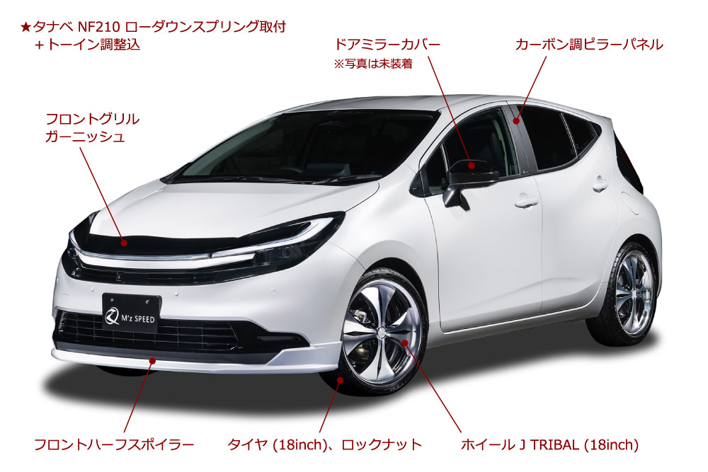 エアロバージョンと比較して下記装備がお得 AES製カーボン調ピラーパネル ドアミラーカバー塗装済 タナベ NF210 ローダウンスプリング Jトライバル 18インチ